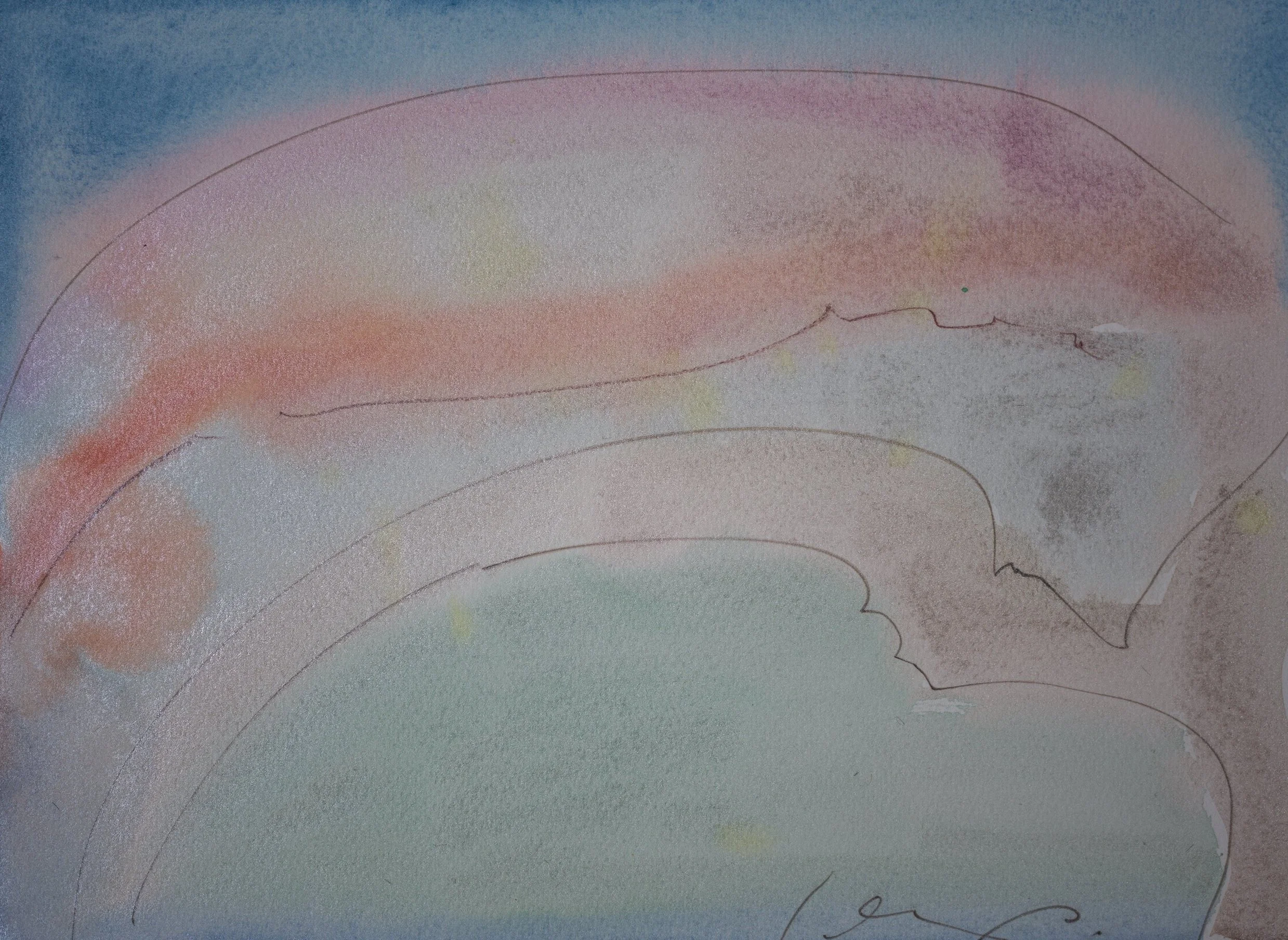 Paintings from the left: Motherland 2025 watercolour and pencil on paper | Soil, 2021 (detail) Oil and organic materials on linen 50 x 70 cm | Silence, 2021 (detail) Oil and organic materials on linen 50 x 70 cm